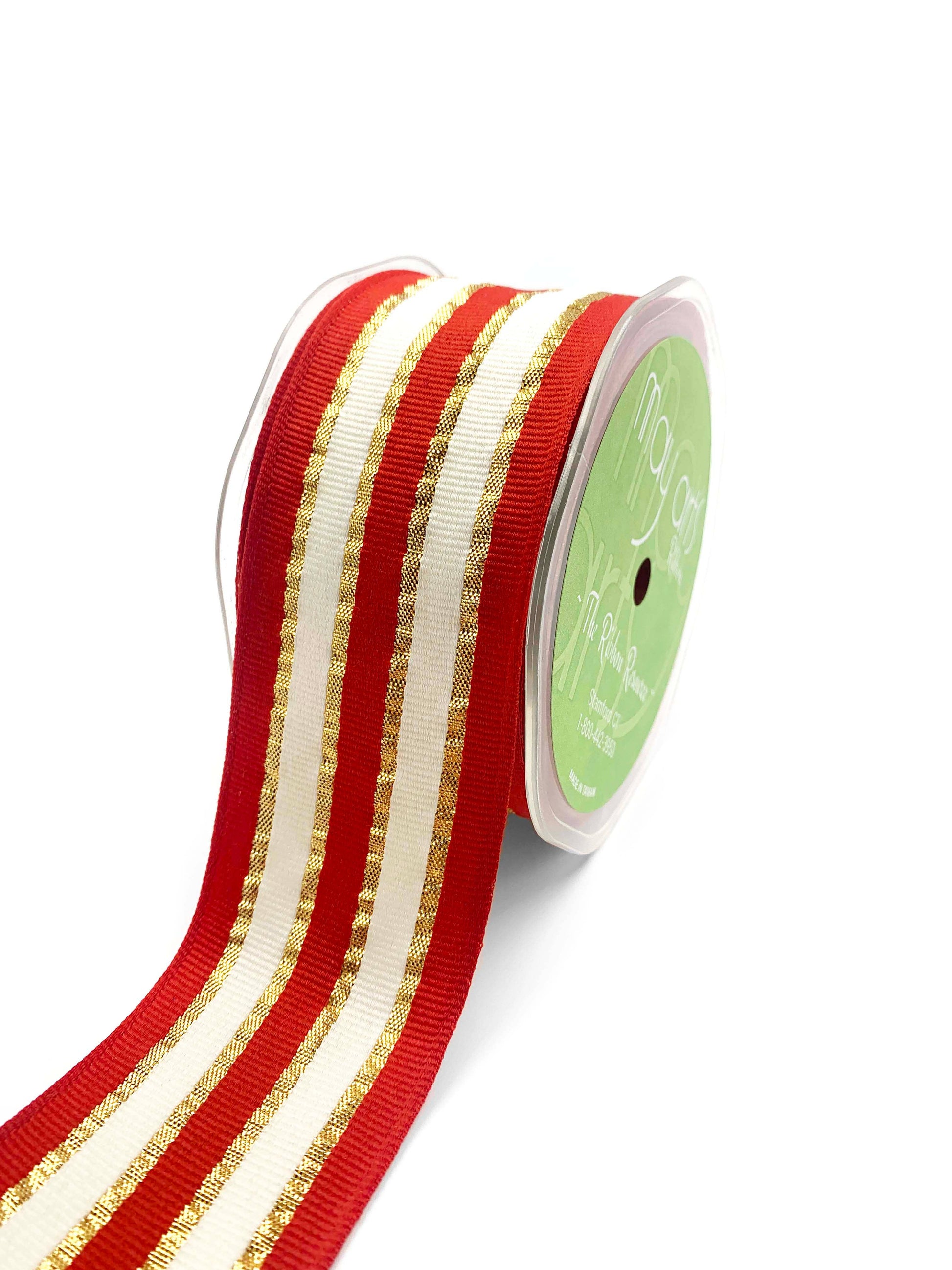 ~2" Red Woven Metallic Gold Stripe Wired Ribbon